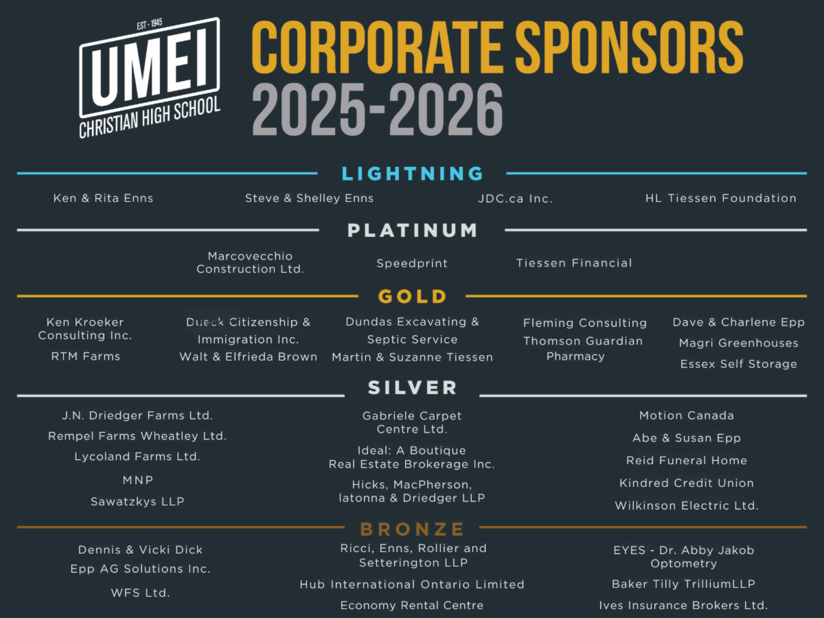 Join us in thanking our Corporate Partners whose essential support helps UMEI Christian High School educate the whole person, cultivating full academic, spiritual and individual potential, in order to make young people “doers of the word” in the community.