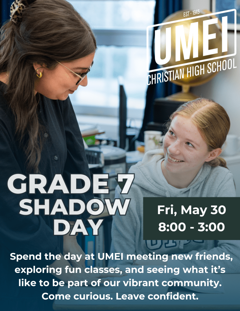 Our Shadow Days are for you to get the “real” experience of what a day at UMEI is like! You come to UMEI like any other student, and attend classes together with our Grade 9s and 10s. Don’t worry – we won’t make you write any tests! Bring your own lunch (microwaves available) – we will even give you a locker for the day. Come and imagine yourself here at UMEI!